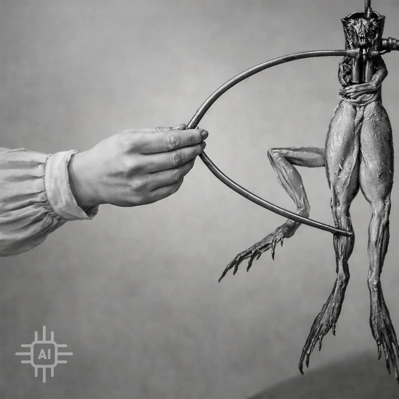 V roce 1773 se začal Galvani zabývat studiem žab. Při pokusech s pitvanými žábami si Galvani 26. 1. 1781 všiml, že žabí stehýnka položená na plechové podložce, na které stál také elektrický přístroj, sebou při dotyku kovového nože na nerv samovolně škubají, pokud je přístroj v chodu. Předpokládá se, že těmto pokusům asistovala Galvaniho žena Lucia.